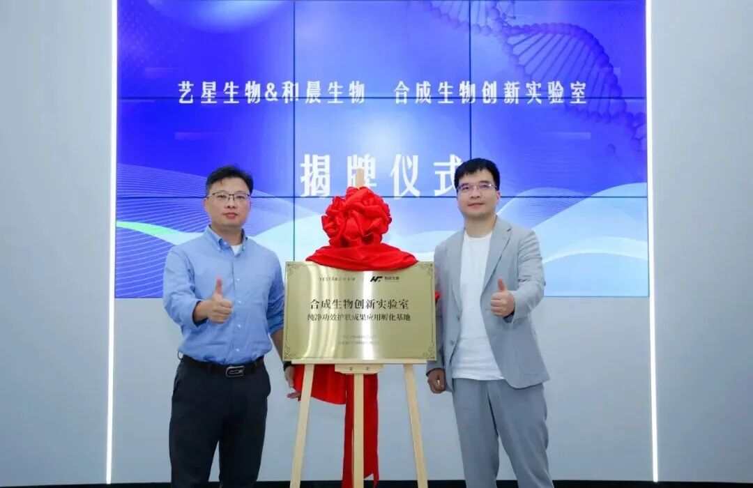 为推动护肤前沿技术与产业需求的精准对接,“艺星生物&和晨生物合成生物创新实验室(纯净功效护肤成果应用孵化基地)” 揭牌仪式在现场隆重举行。艺星生物总经理程智斌与和晨生物董事长杨青共同为实验室揭幕。